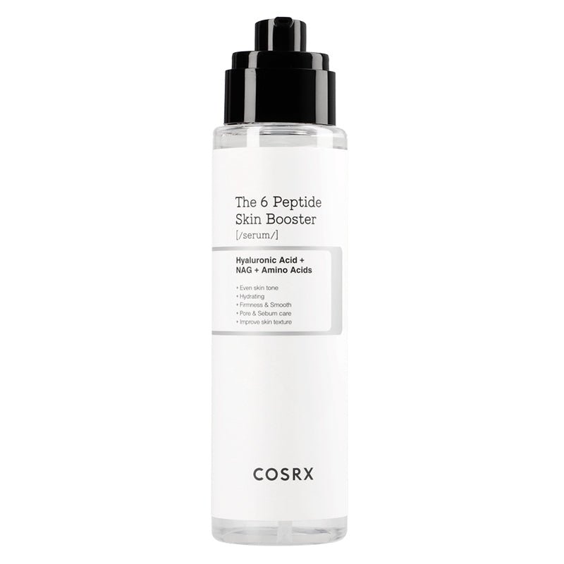 COSRX The 6 Peptide Skin Booster Serum is a fast-absorbing serum formulated with a blend of six bioactive peptides. These peptides work synergistically to target signs of aging and improve skin health. The formula is designed to be gentle yet effective, making it suitable for all skin types, including sensitive skin. It has a non-greasy, fluid texture that layers well under other skincare products, ensuring minimal residue and quick absorption. Additionally, it is perfect for individuals with complex skin concerns, including those who want to address multiple skin issues like pores, excess sebum, fine lines, and uneven skin texture and tone.