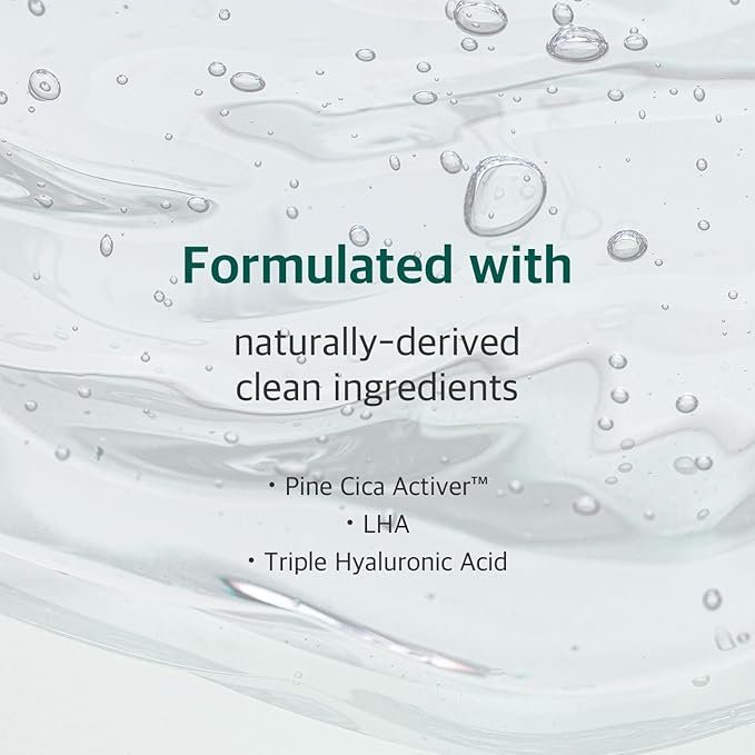 Water, Pinus Densiflora Leaf Extract, Glycerin, Dipropylene Glycol, Glycereth-26, Centella Asiatica Extract, Hyaluronic Acid, Hydrolyzed Hyaluronic Acid, Sodium Hyaluronate, Butylene Glycol, Portulaca Oleracea Extract, Propanediol, Chondrus Crispus, Ethylhexylglycerin, Biosaccharide Gum-1. Glycoproteins, Ammonium Polyacryloyldimethyl Taurate, Tromethamine, Polyglyceryl-4 Caprate, Asiaticoside, Asiatic Acid, Madecassoside, Madecassic Acid, Polyglyceryl-6 Caprylate, Capryloyl Salicylic Acid, Hydroxyethylcellulose, 1,2-Hexanediol, Hydroxyacetophenone, Disodium EDTA, Xanthan Gum, Carbomer.